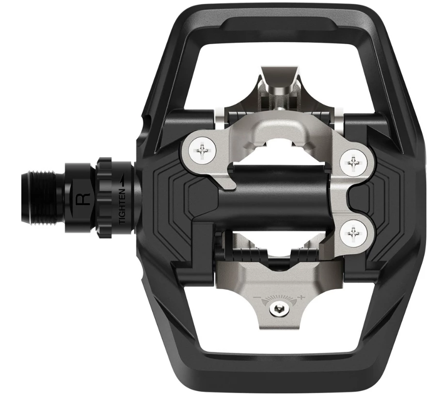 - Breite, zweiseitige Aufstandsfläche für höhere Pedal-Schuh-Stabilität und Kraftübertragung