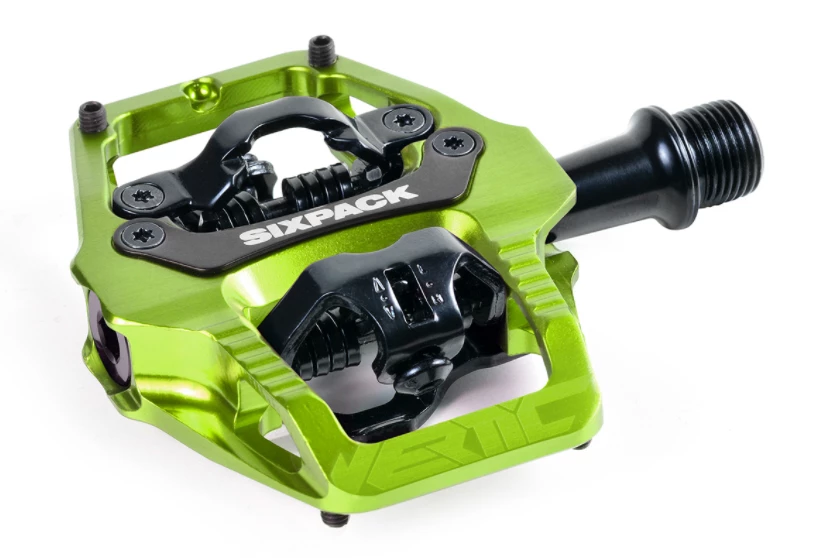 Die CrMo Achse (Q-Faktor 53mm) läuft auf hochwertigen, gedichteten Industrielagern und wird durch DU Buchsen und SIXPACK Custom Radial Seal geschützt und sicher fixiert. Inklusive Cleats (8° Float).