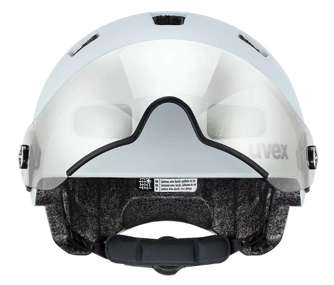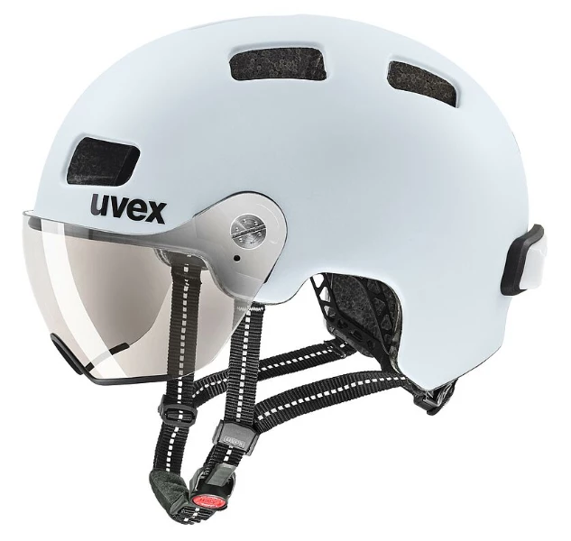 Cool. Stylisch. Und sicher. So sieht der ideale Helm für die Stadt aus. Als urbaner Trendsetter mit minimalistisch-cleanem Design erfüllt der uvex rush visor alle Ansprüche an hohem Tragekomfort und herausragende Sicherheit. Du kannst den vielseitigen Visierhelm zum Business-Outfit genauso gut kombinieren, wie zur casual streetwear, ohne dabei auf eine erstklassige Komfort- und Sicherheitsausstattung zu verzichten. Denn du kannst den superleichten Inmould-Helm durch das 3D IAS Größenverstellsystem in Höhe und Weite optimal an deine Kopfform anpassen. Zusätzlichen Schutz im Großstadtdschungel bietet dir der tiefgeschnittene Nackenbereich. Und für bessere Sichtbarkeit in der Dämmerung haben wir den uvex rush visor mit einem Plug-In LED sowie mit reflektierenden Gurtbändern und Logos ausgestattet. Praktisch: Das Allwetter-Visier mit erweitertem Sichtfeld in litemirror silver (Cat.1) schützt die Augen im Straßenverkehr optimal vor Sonne, Wind und anderen Umwelteinflüssen.