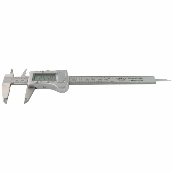 Ultra-precise and easy to use with its large format screen, the VAR Digital Caliper has a 0.01mm precision (0.0005 inches) with a maximum measurement of 150mm (6 inches).